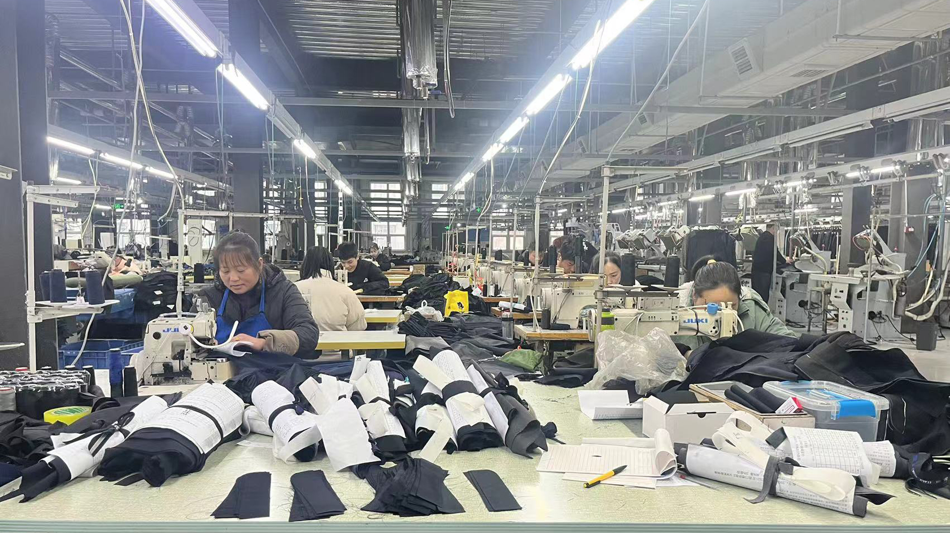 開放式工廠 行政辦公樓 形象展示店 展廳一角 樣衣展示 自動化裁剪 車間精細生產 流水線成品庫